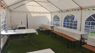 In der größten Variante (8 x 4m) haben bis zu 60 Personen bequem Platz.